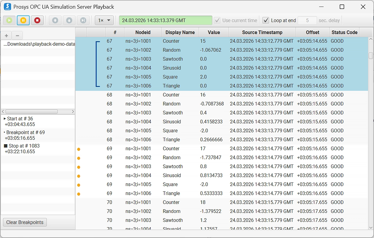 Data can be recorded with Prosys OPC UA Browser Pro